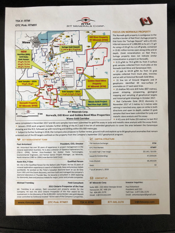 Herr Tremblay ist Field Consultant für das Unternehmen. Mr. Tremblay ist der Grundstücksverkäufer für die Goldgrundstücke Norwalk, Dill River, Golden Reed Mine, Dog Lake und Ballard Lake, die sich zu 100 % im Besitz der Firma befinden. Mr. Tremblay gewann den Ontario Prospector of the Year Award 2013 für seine Beteiligung an der Entdeckung der Goldlagerstätte Borden Lake (die heute von Goldcorp kontrolliert wird), die sich etwa 50 Kilometer östlich der Grundstücke des Unternehmens befindet.
