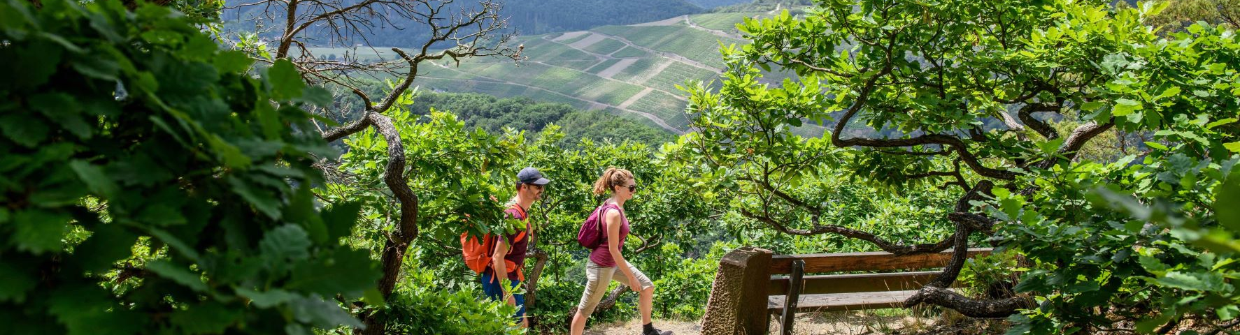 Anspruchsvollen Wanderfans bietet der AhrSteig alles, was das Outdoor-Herz begehrt: Vielfältige Naturlandschaften vom idyllischen Waldweg bis zum engen Felspfad, einen Reichtum an Kulturschätzen entlang der Wegstrecke – und romantische Hochplateaus, die atemberaubende Fern- und Panoramablicke auf die imposanten Weinbergterrassen und bis weit über die Ahrhöhen hinaus bieten. In den Weinorten – ideal zum Pausieren – haben inzwischen auch wieder einige Gastronomie- und Übernachtungsbetriebe geöffnet.