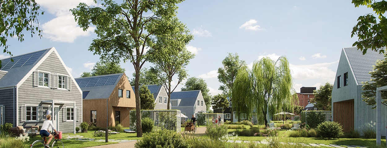 Zeitlos-moderne Einzel- und Doppelhäuser aus natürlichen Materialien werden entstehen. Mit effizienten Wohnflächen von ca. 65 bis 105 qm, viel Komfort, eigenen Terrassen, Außenbereichen, ganzjährig nutzbar.