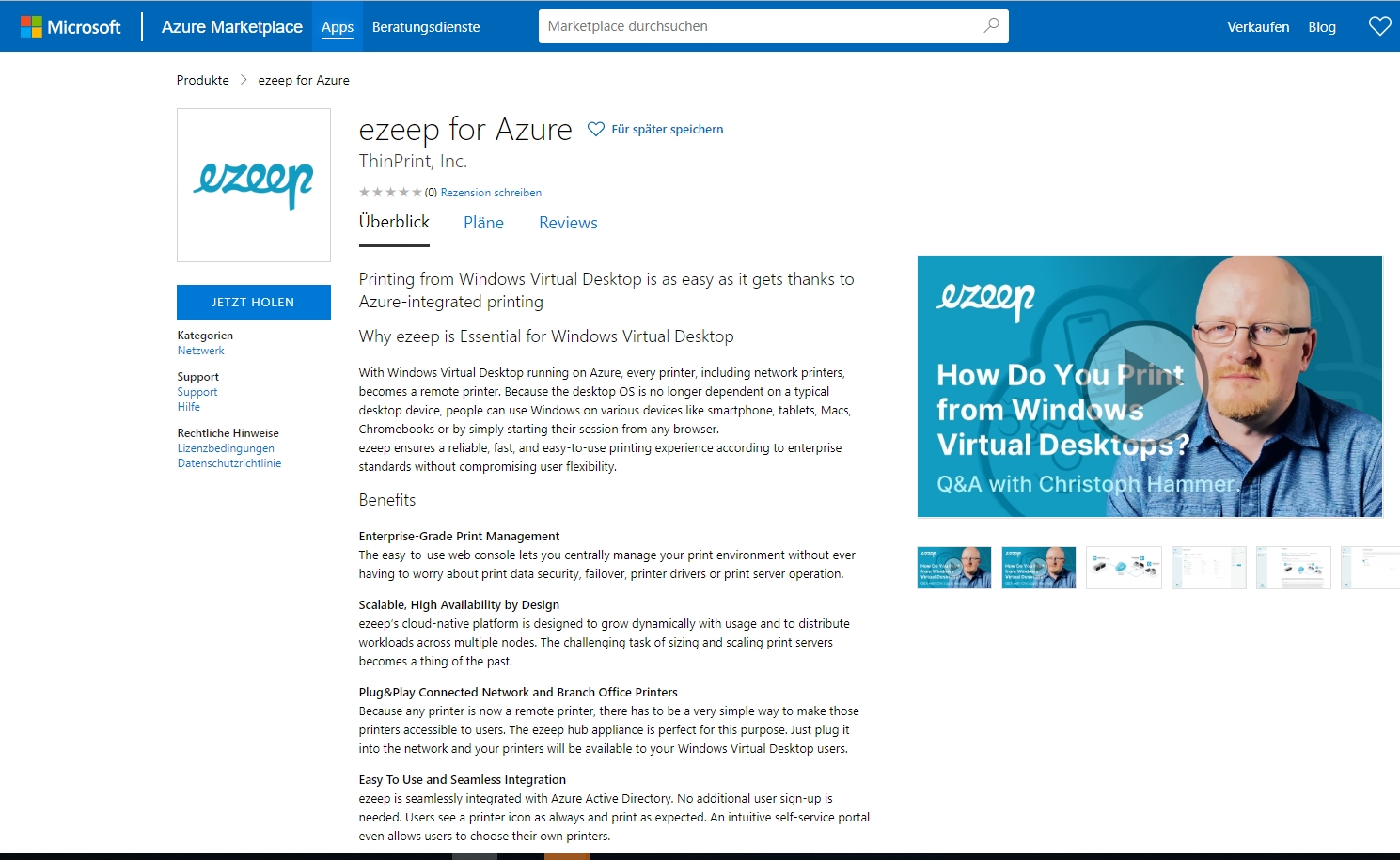 Das Azure-basierte ezeep garantiert Unternehmen schnelles, einfaches und sicheres Drucken mit Microsoft´s Windows Virtual Desktop (WVD) ThinPrint, Experte für Druckmanagement…