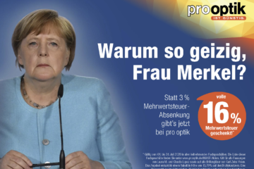 Warum so geizig, Frau Merkel? pro optik schenkt ab sofort die kompletten 16 % Mehrwertsteuer