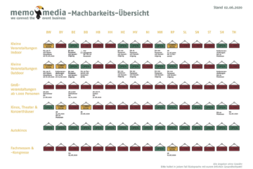 Regelmäßig aktualisierte Machbarkeits-Übersicht aller Bundesländer auf memo-media.de Waldbröl, 03.06.2020 – Seit dem 6. Mai 2020 gibt die Regierung schrittweise Lockerungen…
