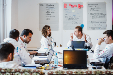 Mitarbeitende entwickeln und testen neue Lösungsansätze für den Pharmadienstleister – Gruppenarbeit schafft Raum für kreatives Denken – Mitarbeitende entwickeln fachübergreifend…