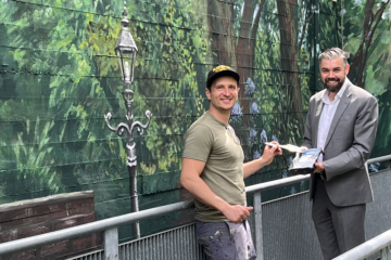 Aktiv mit Farbe und Form Die Sonnenstrahlen „tanzen“ über die frisch designte Wand und lassen die gestaltete Garten-Szene lebendig erscheinen….