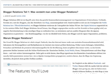WeiterlesenDie PR- und SEO-Beratung Görs Communications über den richtigen Umgang mit Bloggern Blogger Relations (BR) ist ein Begriff, unter dem…