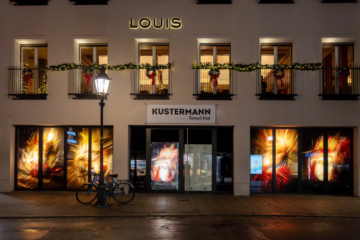Fotokunst Installation im Schaufenster am Viktualienmarkt im LOUIS Hotel Mit der über zehn Meter breiten Kunstinstallation „Entfesselte Farben“ des Münchner…