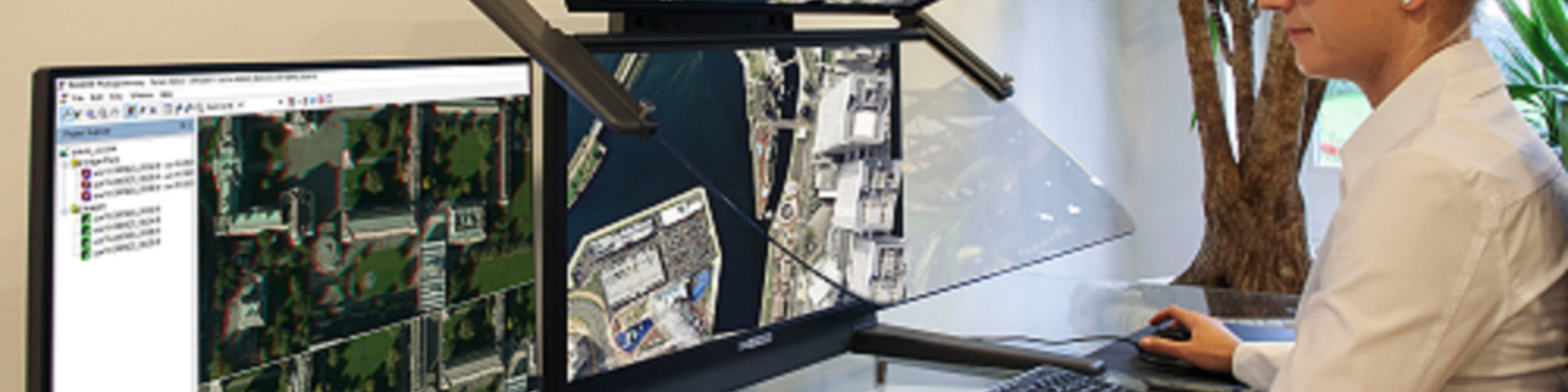 Die topographische Vermessung und Aktualisierung, bzw. Nachführung der gesamten Infrastruktur obliegt in Deutschland den Landesvermessungsämtern. Die ImageStation® wurde speziell für professionelle Anwender aus der Photogrammmetrie und Kartographie entwickelt und stellt einen umfassenden Satz an Datenerfassungswerkzeugen bereit. Um sich in dieser stereoskopisch-dreidimensionalen Realität intuitiv bewegen und präzise messen zu können, wurde in die Hightech-Software von Anfang an ein wichtiges Steuerungselement integriert: der 3D-Stereo Maus-Cursor. Die stereoskopische Maus-Cursor Implementierung ist die Voraussetzung, um mit präzisen 3D-Controllern arbeiten zu können und ermöglicht das perfekte Zusammenspiel mit den Plug & Play kompatiblen und leistungsstarken 3D PluraView Monitorsystemen von Schneider Digital. Die auf der Beamsplitter-Technologie basierenden, passiven 3D-Monitore von Schneider Digital überzeugen mit einer pixelgenauen Visualisierung von bis zu 4K pro Stereokanal, einem schnellen Bildaufbau, einer hohen Farbtiefe, hohen Helligkeits- und Kontrastwerten.