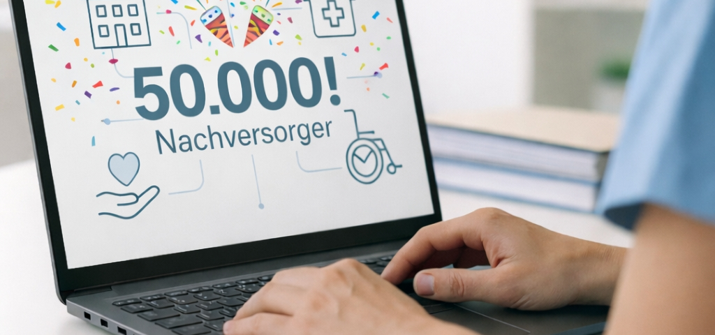 Die Marke von 50.000 Nachversorgern ist das Ergebnis kontinuierlicher Arbeit eines interdisziplinären Teams aus Entwicklung, Produkt- und Datenmanagement, Vertrieb und Support. Der Ausbau des Netzwerks bleibt ein zentraler Fokus, um Kliniken bundesweit eine noch schnellere, verlässlichere und regional passgenaue Nachversorgung zu ermöglichen.