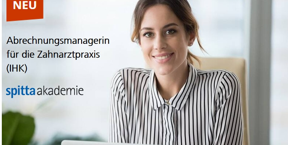 Mit dem neuen Online-Lehrgang zur Abrechnungsmanagerin für die Zahnarztpraxis (IHK) bietet die Spitta Akademie erstmalig einen reinen Online-Lehrgang zum Einstieg in die zahnärztliche Abrechnung an.