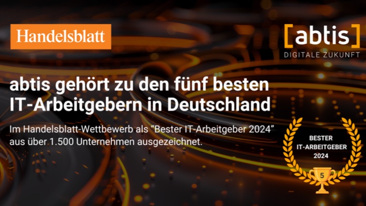Die Auszeichnung würdigt Arbeitgeber, die sich besonders durch freiwillige Leistungen und ein umfangreiches Weiterbildungsangebot für ihre Mitarbeiterinnen und Mitarbeiter hervortun. Dafür hat das Institut SWI mehr als 1.500 Unternehmen zum Angebot für ihre Angestellten befragt. Für die Auszeichnung „Bester New-Work-IT-Arbeitgeber“ waren darüber hinaus flexible Arbeitszeiten oder eine technische Unterstützung bei Remote Work relevant. 140 der teilnehmenden Unternehmen erhielten bei dem Wettbewerb eine Auszeichnung, abtis erreichte in der Kategorie der mehr als 100 Beschäftigten einen hervorragenden fünften Platz und zudem die Anerkennung im Bereich New Work.