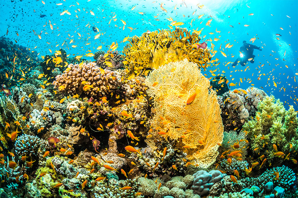 Die Tauchbasis Aquanautic Dahab liegt in einem wunderschönen Beduinendorf mitten im Sinai. Ein Paradies für Abenteurer, denn hier trifft eine wilde Wüstenlandschaft auf die spektakuläre Unterwasserwelt des Roten Meeres. Tiefe Meeresgräben, bunte Korallengärten und eine große Fischvielfalt in unmittelbarer Ufernähe garantieren Tauchanfängern und Profis ein atemberaubendes Panorama – auch abseits von Highlights wie dem Blue Hole oder dem Naturreservat Gabr El Bint. Und wer zwischendurch doch einmal Luft holen muss, kann die weite Wüste Dahabs auf dem Rücken von Kamelen erkunden, beim Desert Yoga unter freiem Sternenhimmel entspannen und uralte Geschichte hautnah erleben.