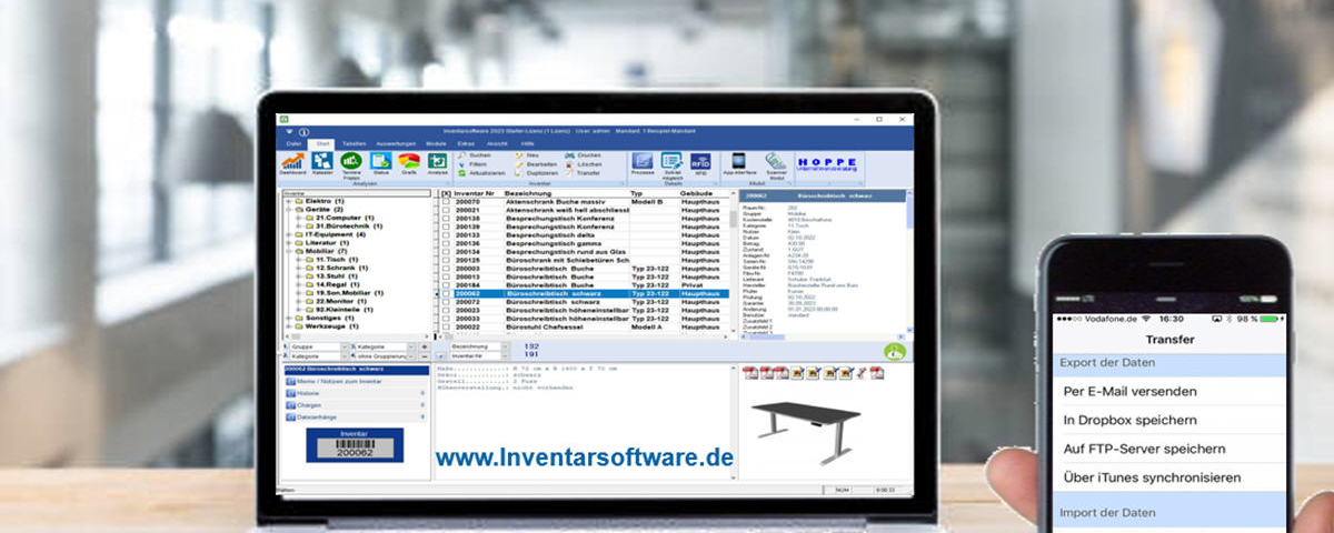 Der Inventar-Manager von HOPPE ist eine Software zur Geräteverwaltung, in der man einfach und komfortabel das gesamte Inventar eines Unternehmens erfassen und aktualisieren kann.