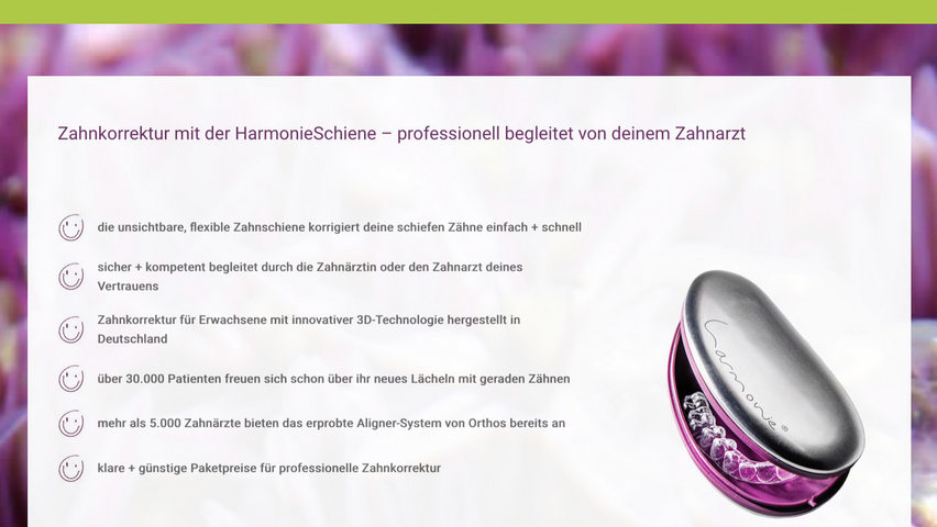 Die Daten der Zahnärzte und Kieferorthopäden, mit denen Orthos zusammenarbeitet, werden betriebsintern in einem CRM-System verwaltet. In Zusammenarbeit mit dem Hersteller der CRM-Software programmierten die Webentwickler von formativ.net eine Anbindung, die die Daten der angeschlossenen Arztpraxen auf der Website darstellen kann. Ziel war, dass interessierte Patienten alle Kontaktdaten von Praxen in ihrer Nähe finden, die die gewünschte Therapie anbieten.
