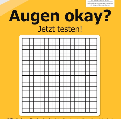 PRO RETINA Deutschland e.V. ist die größte und älteste Selbsthilfevereinigung von Menschen mit Netzhautdegenerationen.[10] Um für das Thema AMD öffentlich Aufmerksamkeit zu schaffen, veranstaltet PRO RETINA vom 20. bis 27. November 2021 die „AMD-Woche“. Ziel ist es, die Bevölkerung über die Erkrankung AMD aufzuklären und insbesondere auf die frühen Symptome einer möglichen AMD hinzuweisen, die Patienten selbst feststellen können. Zu diesem Zweck wird in der Awareness-Kampagne das Amsler-Grid z.B. auf Plakaten an prominenten öffentlichen Stellen angebracht. Flankiert werden diese Maßnahmen von diversen Informationsveranstaltungen. „Wir bei PRO RETINA sind sehr froh, mit unserer Aktion die Aufmerksamkeit für das wichtige Thema AMD in der Öffentlichkeit erhöhen und so Betroffenen früher helfen zu können“, kommentiert Dario Madani, Vorstandsvorsitzender von PRO RETINA, den Start der Awareness-Kampagne. „PRO RETINA fungiert als Bindeglied zwischen Betroffenen, Medizin und Forschung, um im Bereich der AMD innovative Therapien zu entwickeln und so gemeinsam das Ziel zu erreichen, das Augenlicht betroffener Patienten bestmöglich zu bewahren“, so Madani weiter.