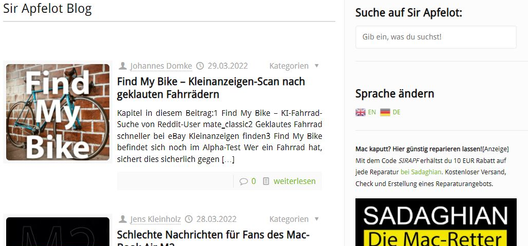 Die beste Apple Anlaufstelle, Sir Apfelot Blog
