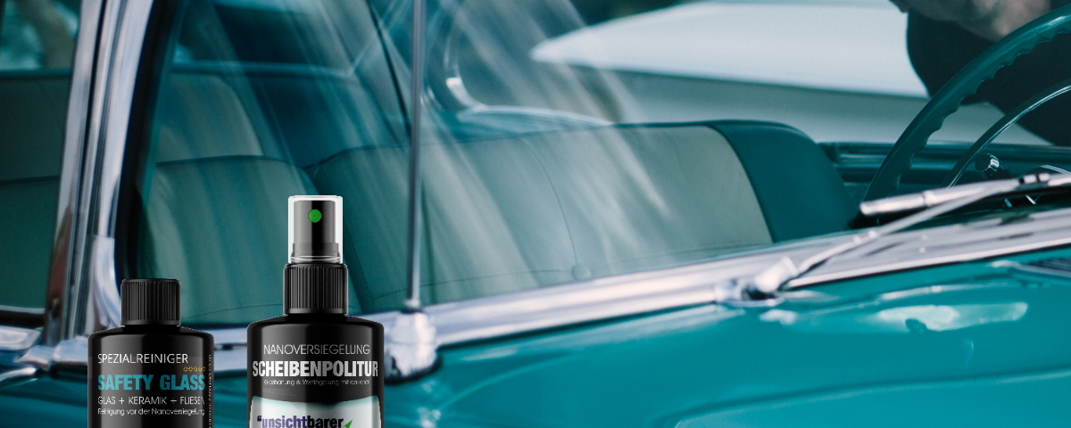 Die Frontscheibe des Autos ist das Schutzschild für seine Insassen. Verschleiß und Mikrokratzer durch Scheibenwischer und Waschstraßen verschlechtern mit der Zeit Eigenschaften der Autoscheibe. Autoscheiben sind wie alle Glasoberflächen unterm Mikroskop betrachtet nicht ganz glatt. Moderne Nanochemie konstruiert Glasmoleküle (ein amorphes Siliciumoxid), die sich in diese zerklüftete Oberfläche durch kovalente Bindung einfügen. Sie werden Glasoberflächen wie Frontscheiben geglättet und die Eigenschaften verbessert.