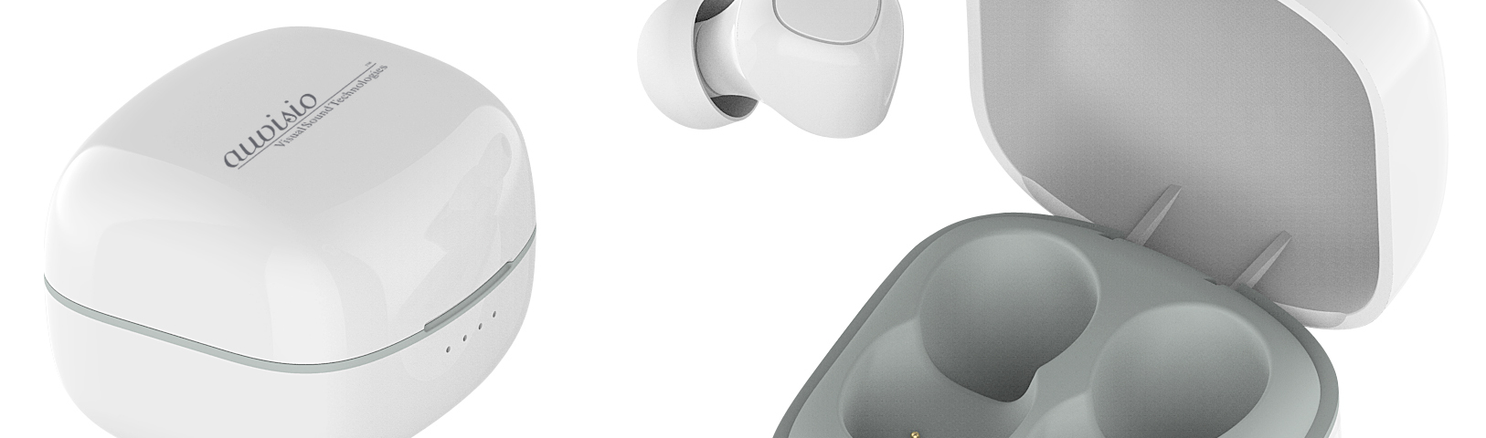 – Headsets schalten sich beim Laden in der Ladebox aus und koppeln sich nach dem Entnehmen aus der Box selbstständig