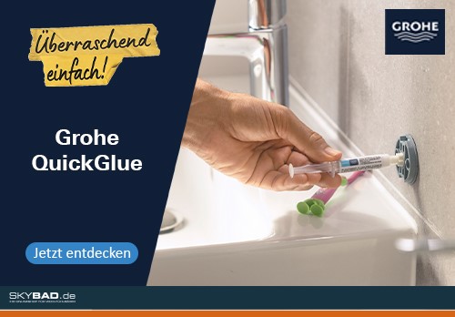 Alle kompatiblen Produkte, sowie den besagten Kleber „GROHE QuickGlue“, und viele weitere herausragende Artikel, finden Sie auf skybad.de.