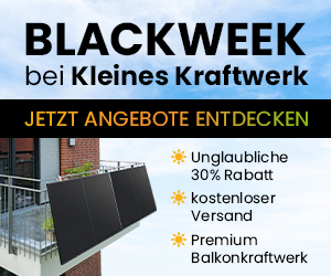 BlackWeek-Aktion von Kleines Kraftwerk mit 30% Rabatt auf Balkonkraftwerke und kostenlosem Speditionsversand