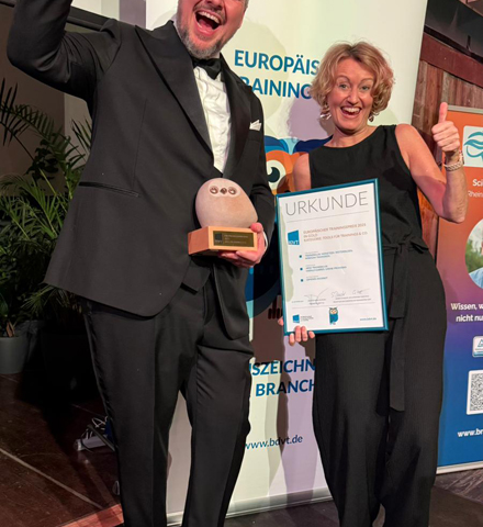 Aufgrund all dieser Funktionen gelangte die BDVT-Fachjury zum Schluss, der Trainerklub sei „ein Tool, das den Nerv der Zeit trifft, vorausschauend KI mitdenkt und interne Trainer:innen wirksam unterstützt“. Deshalb entschied sie ihn mit dem Europäischen Trainingspreis in Gold 2025 auszuzeichnen. „Die Auszeichnung zeigt uns“, sagt Sabine Prohaska stolz, „dass unser Engagement europaweit Anerkennung findet“. „Sie bestärkt uns zudem, den trainerKlub weiterzuentwickeln – etwa durch KI-gestützte Lernpfade“, ergänzt Harald Karrer.