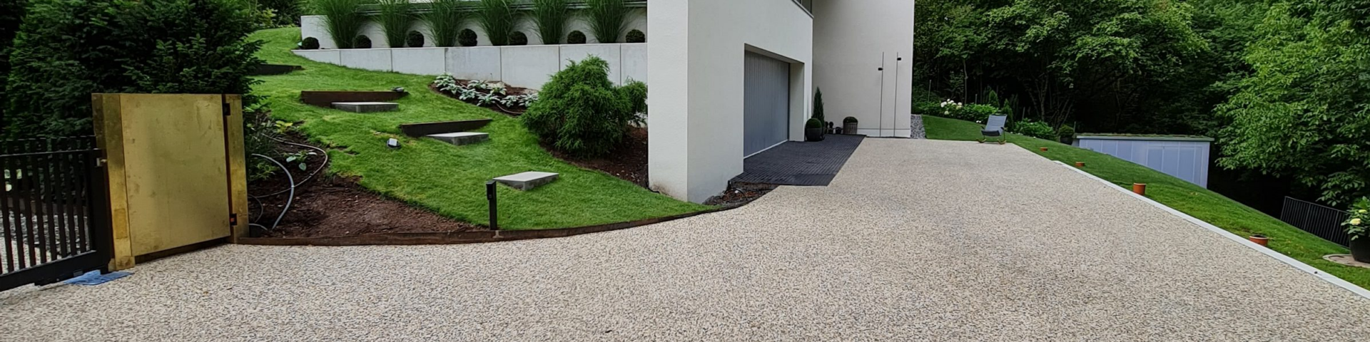Klassische Steinteppiche erreichen diese Anforderungen nicht. Sie entstanden ursprünglich für Terrassen, Balkone und dekorative Zonen. Bei Fahrzeugverkehr entstehen Risse, Ausbrüche und Abriebzonen, besonders an Wendepunkten und Steigungen. Die Struktur dieser Beläge reagiert empfindlich auf Punktlasten und Schubkräfte, die im Alltag ständig auftreten.