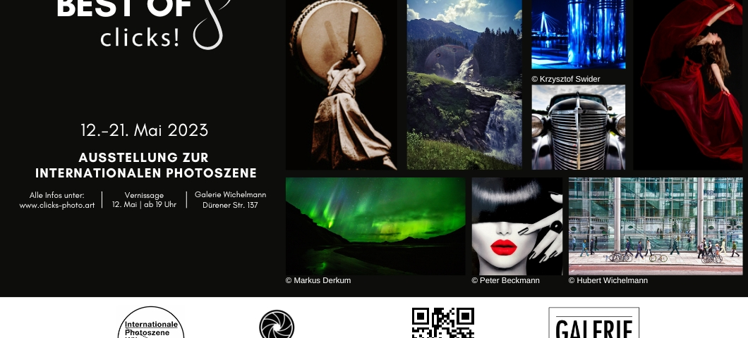 Im Rahmen der Photoszene 2023 ist die Kölner Foto-Gruppe clicks! wieder dabei und zeigt in einer kleinen aber feinen Ausstellung (Galerie „Wichelmann“, Dürener Straße 137) ein photographisches Crossover, ein spannendes Potpourri verschiedenster Inhalte, Konzepte, Zugänge und Authentizitäten.