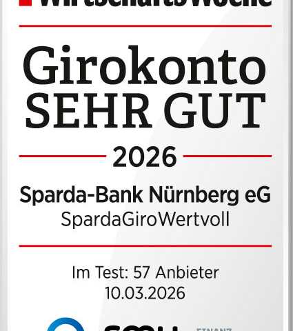 Das Girokonto SpardaGiroWertvoll der Sparda-Bank Nürnberg eG zählt zu den besten Kontomodellen Deutschlands. In einer aktuellen Analyse der FMH-Finanzberatung, die exklusiv für die WirtschaftsWoche erstellt wurde, erhält das Angebot die Bewertung „sehr gut“. Als regional verwurzelte Genossenschaftsbank setzt die Sparda-Bank Nürnberg eG auf persönliche Beratung und ist für ihre Kundinnen und Kunden da, wenn’s zählt.