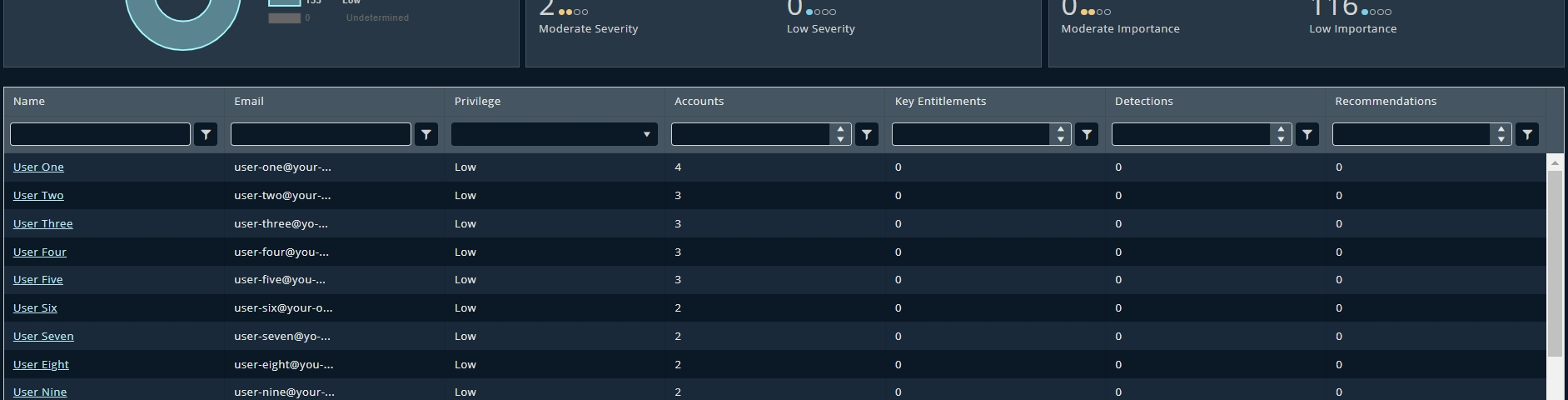 Mit Identity Security Insights verfügen Unternehmen über eine einheitliche und umfassende Ansicht auf alle digitalen Identitäten, Konten, Cloud-Berechtigungen und privilegierten Zugriffe im Unternehmen. Identitätsbasierte Anomalien werden sofort erkannt und lassen sich nach Schweregrad geordnet auswerten, um mögliche Bedrohungen erkennen und Angriffswege proaktiv schließen zu können. Die Lösung ermöglicht es Unternehmen, Daten sowohl von BeyondTrust-Produkten als auch von externen Identitätsanbietern (Identity Provider, IdP) wie Okta, Ping Identity und Microsoft Entra ID (ehemals Azure Active Directory) sowie von Cloud-Anbietern wie AWS und Azure nahtlos zu korrelieren.