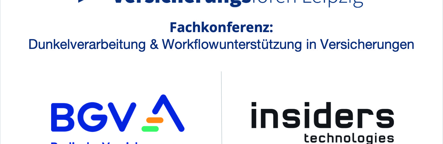 Kaiserslautern, 03.02.2026 – Insiders Technologies, technologisch führender Anbieter von Software für Intelligent Automation (IA), nimmt gemeinsam mit seinem langjährigen Kunden BGV Badische Versicherungen an der Fachkonferenz „Dunkelverarbeitung & Workflowunterstützung in Versicherungen“ der Versicherungsforen Leipzig teil. In ihrem Vortrag „Geschäftsvorfall präzise erkannt: Mit KI-Assistenz zu höherer Automatisierung und Qualität“ geben Sören Hauser, Teamleiter Inputmanagement beim BGV, und Felix Burkhard, Senior Sales Manager Business Unit Insurance bei Insiders Technologies, praxisnahe Einblicke und zeigen, wie moderne KI-Technologien die Dunkelverarbeitung in Versicherungsprozessen optimieren.