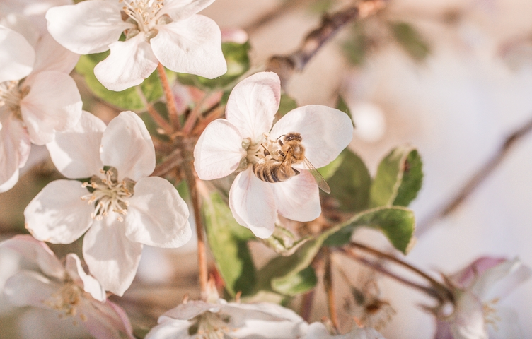 Im Frühjahr entscheiden Bienen über den Erfolg des Apfeljahres. Auf der Suche nach Nektar, der ihnen als Nahrung dient, landen Bienen auf den Apfelblüten. Fliegen sie zur nächsten Blüte, streifen sie dort die Pollen auf der Fruchtnarbe ab. Damit ist die Befruchtung erfolgt und die Blüte kann sich in eine Frucht verwandeln. Sieben Monate später kann dann ein aromatischer Pink Lady Apfel geerntet werden. Die Lebensdauer der Apfelblüte beträgt nur zwei bis zehn Tage. Die Bestäubungszeit ist also extrem kurz. Umso entscheidender sind die Maßnahmen für die Förderung der Bienen.