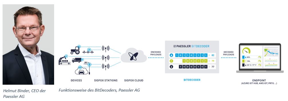 „Der Start der Public BETA des BitDecoders ist ein wichtiger Schritt in Paesslers Bestreben, neue Lösungen im IoT-Bereich anzubieten“, sagt Helmut Binder, CEO der Paessler AG. „Dieses Produkt erweitert unser SaaS-Angebot für die Digitalisierung aller mit Sigfox 0G verbundenen Geräte. Der BitDecoder wurde entwickelt, um das Dekodieren und Transkodieren sowie die Übertragung der Payloads dieser Geräte in die Cloud so einfach wie möglich zu machen.“