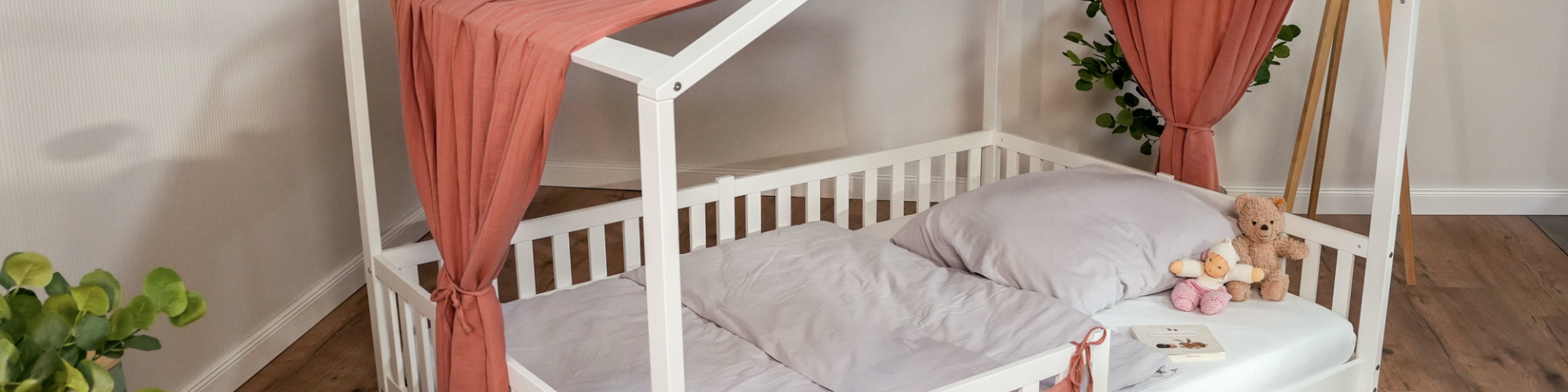 Bodenbett, Montessori Bett, Enno, tiSsi, Kinderbett, Hausbett, Montessori Möbel, Bodennahe Schlaflösung, sicheres Kinderbett, natürliches Holz, Bio-Linie, nachhaltiges Kinderbett, 120 kg belastbar