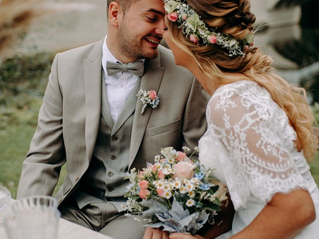 -Moderne Schnitte und Details: In Anzügen für 2024 zeigen sich vermehrt kreative Schnitte und Details. Schmale Hosen mit auffälligen Akzenten, glänzende Revers, auffällige Knopfleisten und interessante Stoffkombinationen verleihen dem Bräutigam einen zeitgemäßen und individuellen Stil der gut zu Boho Bräuten passt.