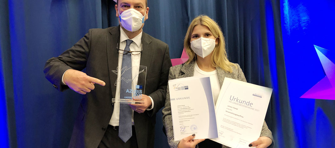 Eigentlich sei sie ein „Prüfungs-Schisser“, sagt sie von sich selbst. Doch davon war bei ihrem Abschluss vor der IHK-Prüfungskammer Düsseldorf wenig zu spüren, auch wenn sie nach dem ersten Prüfungstag eher ein „schlechtes Gefühl“ hatte. Gefühle täuschen bisweilen. Denn am Ende stand nicht nur die Eins vor dem Komma, sondern das Traum-Ergebnis mit 98 von insgesamt 100 möglichen Punkten. Damit schloss Juliane Hampl ihre Ausbildung zur Veranstaltungskauffrau als Jahrgangsbeste im Kammerbezirk Düsseldorf ab. Doch das war erst der Anfang vom Ende einer ausgezeichneten Ausbildung: Denn auch auf Landesebene in ganz Nordrhein-Westfalen hatte die gebürtige Krefelderin die Nase vorn. Und nicht genug: Auch bundesweit setzte sich die 22jährige als Jahrgangsbeste ihrer Berufsgruppe durch. Damit gelang ihr sozusagen das Triple. Entsprechend groß war die Freude, als Juliane Hampl am 19. November in Gelsenkirchen im Rahmen eines offiziellen Festaktes ausgezeichnet wurde.