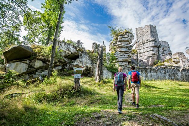 Als Tagestour, deren Ausgangspunkt bequem mit der Bahn zu erreichen ist, eignet sich zum Beispiel die erste Etappe des Qualitätswanderwegs Goldsteig von Marktredwitz nach Friedenfels. Auf der 20 Kilometer langen Strecke durch den Naturpark Steinwald liegt eingebettet in markante Gesteinsformationen die Burgruine Weißenstein. Vom Burgfried der mittelalterlichen Anlage können Wanderer einen Rundblick bis in den Böhmerwald und das Erzgebirge und somit über das größte zusammenhängende Waldgebiet Mitteleuropas genießen. Für die Rückfahrt nutzt man einfach einen Baxi-Anrufbus. Diese und viele weitere Tourentipps sowie eine digitale Wanderkarte sind unter www.oberpfaelzerwald.de/natur-navi zu finden. Dort gibt es außerdem Informationen zu Einkehr- und Übernachtungsmöglichkeiten sowie zu den Sehenswürdigkeiten am Wegesrand.