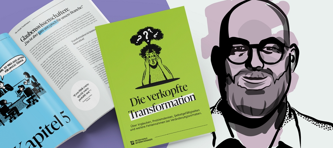 Das ist dem erfolgreichen Interim Manager definitiv gelungen. Allein die lustigen Illustrationen und bunten Farben in der Publikation heben sich von den üblichen Fachpublikationen der Branche ab. Peter Kuhle erklärt: „Uns ging es darum, ein ernsthaftes und komplexen Thema derart aufzubereiten, dass es für die Leserinnen und Leser kurzweilig und gleichzeitig informativ ist.“ Die aktuelle Wirtschaftslage sei laut Kuhle ohnehin schon angespannt genug. Mit der „verkopften Transformation“ wolle der erfahrene Interim Manager darauf hinweisen, dass auch große Herausforderungen mit Spaß an der Sache angegangen werden können.