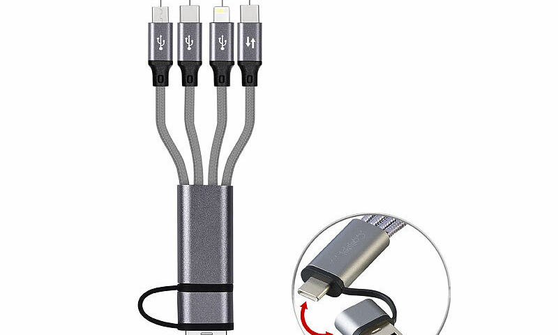 Callstel 8in1-Lade- & Datenkabel USB-C/A zu USB-C/Micro-USB/Lightning, 200 m, 3A