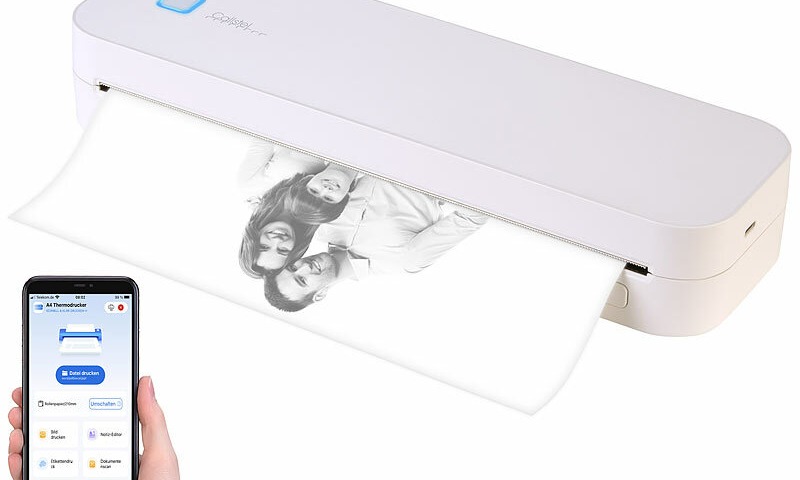 Callstel Mobiler A4 Akku-Thermodrucker TD-210, App, inkl. 200 Blatt Thermopapier