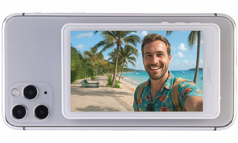 Wer Selfies oder Vlogs mit der Hauptkamera des Smartphones aufnimmt, verzichtet bislang meist auf die Bildkontrolle. Der Selfie-IPS-Monitor von Callstel schafft hier Abhilfe: Das Display zeigt das Kamerabild in Echtzeit und ermöglicht so die präzise Kontrolle über Bildausschnitt und Aufnahme – ob beim Vlog, im Gespräch vor der Kamera oder beim spontanen Gruppenfoto.