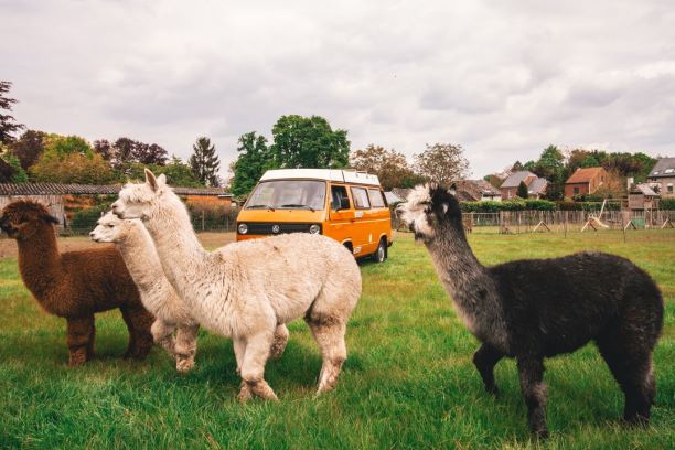 Die Weide von Stephanie und Michiel liegt nur einen Kilometer von der belgischen Gemeinde Haacht entfernt. Hier teilen sich Camper den Platz mit ruhigen und friedlichen Campingfreunden aus Südamerika: den Alpakas. Schon nach der ersten Tasse Kaffee am Morgen ist es an der Zeit, die Tiere zu füttern. Neben Alpakas gibt es auch Hühner, Pfauen und Schafe auf dem Gelände. Die östlich von Brüssel gelegene Stadt Löwen ist nur zehn Minuten entfernt und eignet sich perfekt für einen Tagesausflug. Dort gibt es neben dem Alten Markt auch das Rathaus aus dem 15. Jahrhundert zu entdecken.