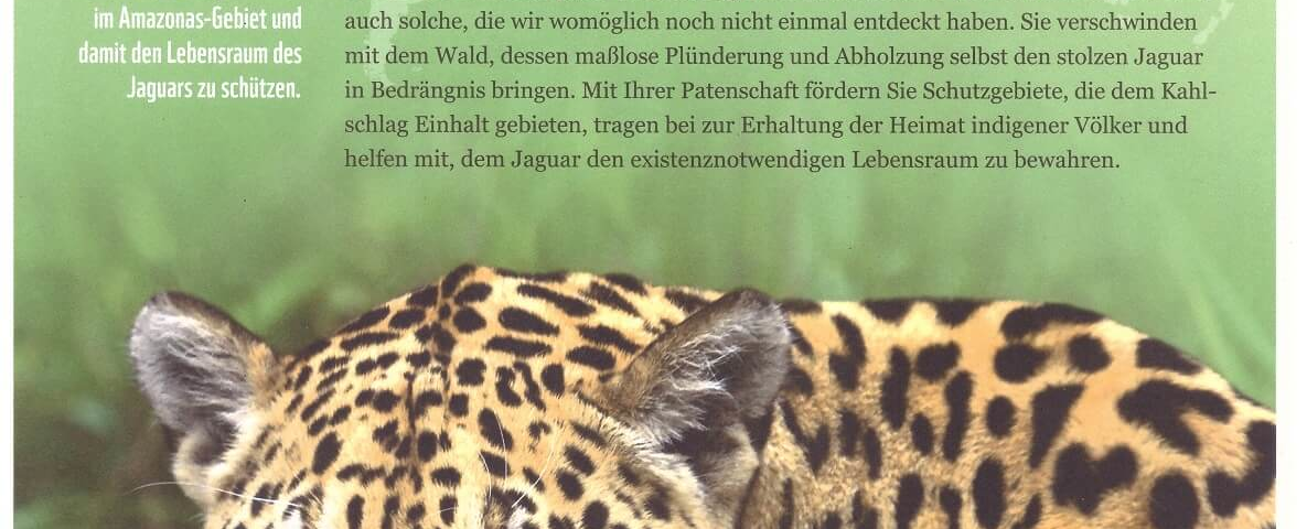 Aus diesem Grund unterstützt die CAPANOVA GmbH, mit Sitz im mittelhessischen Neu-Isenburg, gemeinsam mit dem WWF-Deutschland den Jaguar und dessen Lebensraum im südamerikanischen Amazonas.