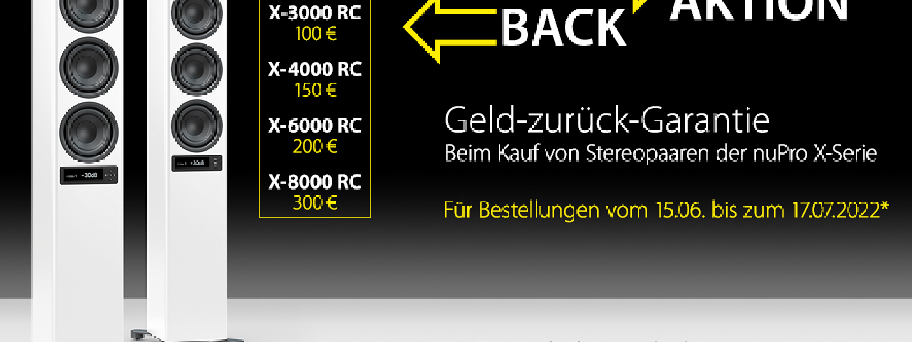 Pünktlich zum Sommeranfang steigen die Temperaturen, aber bei Nubert bleiben die Preise konstant. Damit der Kauf der Topmodelle der nuPro X Serie noch attraktiver wird, haben die Schwaben eine Cashback-Aktion geschnürt, bei der 45 Tage nach Ende der Aktion ein Teil des Kaufpreises erstattet wird.