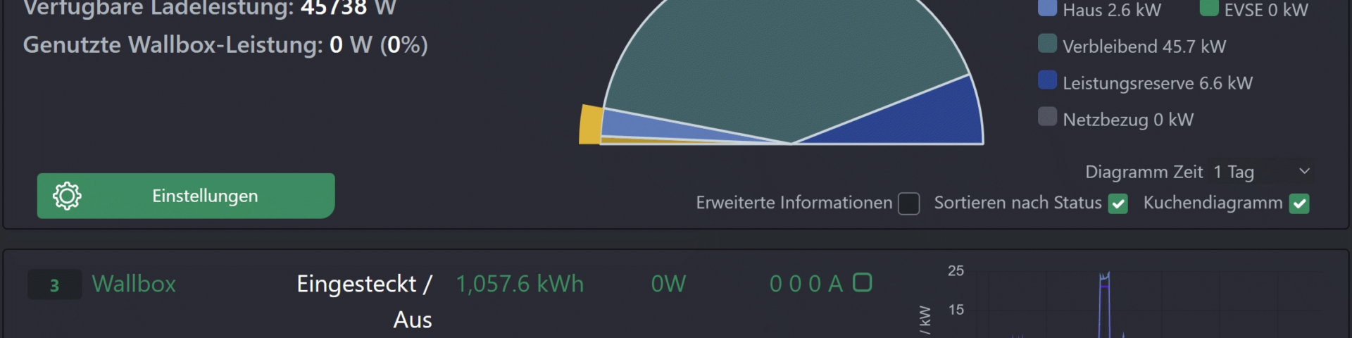 Alle 10 Sekunden wird die Ansicht aktualisiert. So können User live verfolgen, wie viel das Elektroauto verbraucht, woher die Energie stammt und welche anderen Verbräuche im Haus feststellbar sind.
