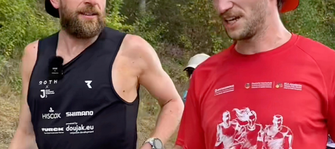Bei der „Challenge 120“ absolviert Jonas Deichmann an 120 aufeinanderfolgenden Tagen auf der Triathlon-Langdistanzstrecke im mittelfränkischen Roth jeden Tag einen Triathlon – also 3,8 Kilometer Schwimmen, 180 Kilometer Radfahren und 42,2 Kilometer Laufen. Fabian Pelzer und Andreas Barz, Dozenten der Deutschen Hochschule für Prävention und Gesundheitsmanagement (DHfPG)/BSA-Akademie, haben den Extremsportler einen Tag lang begleitet und ihm ein paar Fragen gestellt!