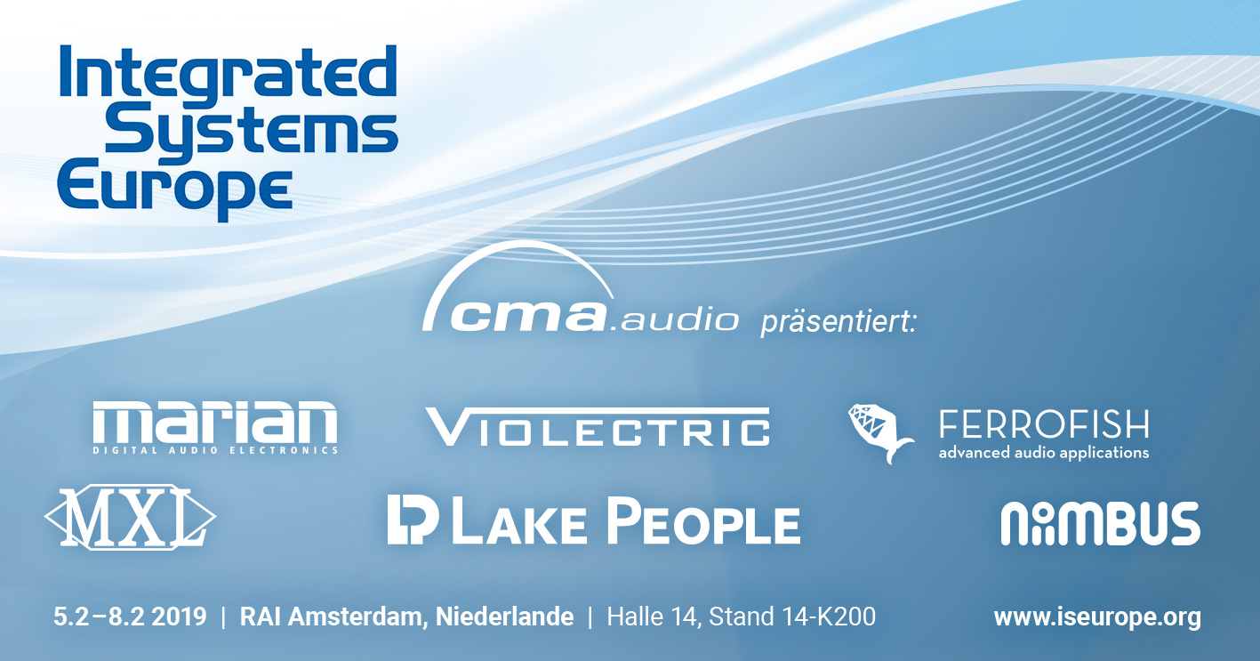 cma audio präsentiert auf der ISE 2019 Highlights der Marken Ferrofish, Lake People, Violectric, Niimbus, MARIAN und MXL