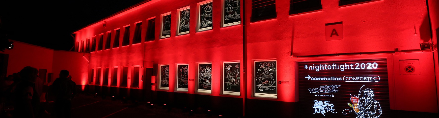 Die Essener Initiative „Night of Light“ ist durch Solidarität, Leidenschaft und kreative Part-nerschaftlichkeit zum Erfolg geworden. „Füreinander, miteinander und die Stärken des Part-ners für die gemeinsamen Ziele optimal einsetzen, das war immer unser Mantra und eine Stärke von commotion“, betont Jörg Seng. Und so ist auch die Aktion „Ein kleiner Strich zwischen Weinen und Lachen“ ein Gemeinschaftswerk. Neben Thomas Klefisch haben Se-verin Cremer und Adrian Virnich von confortec die technische Planung und Ausstattung übernommen, Joachim Wüst von Event Deco Wüst die Dekoration.