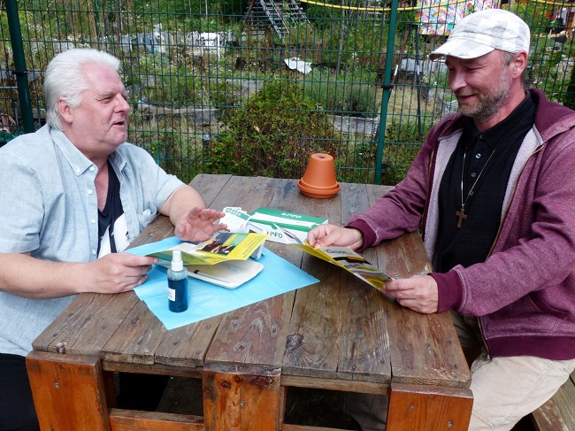 „Wir erreichen unsere Klient*innen am besten bei uns im Kontakt Cafe. Jeden Dienstag kommt der mobile Dienst in die Einrichtung und gemeinsam bieten wir HCV Schnelltests vor Ort an“, erklärt Marco Jesse. Dann heißt es für den 55-jährigen Bernhard Barthel und die 43-jährige Izabela Ast, beides Ehemalige der Szene, präsent zu sein, ein offenes Ohr zu haben und viele Vorurteile über die Hepatitis C, und die früheren Therapienebenwirkungen abzubauen. Beide sind so genannte „Buddies“, die auf Wunsch, einen HCV positiv getesteten Betroffenen auf dem Weg in und durch die Therapie begleiten. „Trau dich – die Behandlung ist heute nicht mehr belastend und mit Unterstützung fällt es dir leichter, den ersten Schritt zu gehen“, muntert Izabela Ast häufig auf und weiß, dass insbesondere ihr persönliches Engagement dem Gegenüber hilft.
