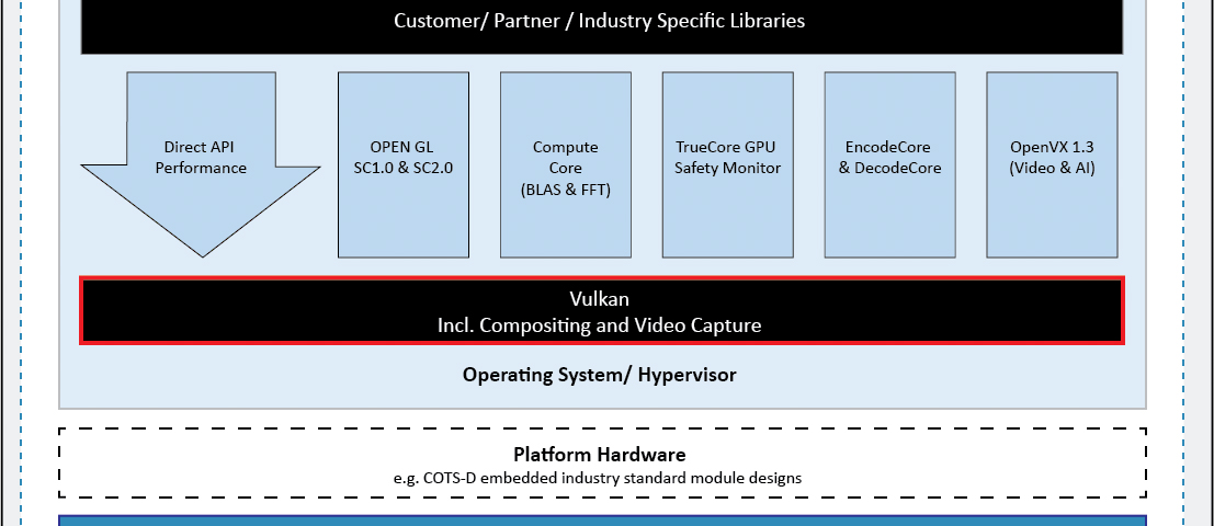 CoreAVI hat den sicherheitskritischen Grafik- und Rechentreiber VkCore SC entwickelt, der auf die neue Vulkan SC API der Khronos Group abgestimmt ist. VkCore SC wurde von Grund auf für eine hohe Performance und Flexibilität entwickelt und bietet die Möglichkeit einer Zertifizierung nach ISO 26262 ASIL D, RTCA DO-178C/EUROCAE ED-12C bis hin zu DAL A und IEC 61508 SIL3. Der Treiber unterstützt mehrere GPU-Architekturen, sodass der Entwickler seinen sicherheitskritischen Software-Stack nahtlos über verschiedene Implementierungen hinweg migrieren kann. Dies erhöht die Flexibilität und Skalierbarkeit deutlich und reduziert die Gesamtbetriebskosten für Sicherheitssysteme. VkCore SC bildet die Grundlage der CoreAVI-Plattformen für sicherheitskritische Anwendungen und erfüllt die Anforderungen von allen sicheren Grafik- und Rechenanwendungen aller vertikalen Märkte.
