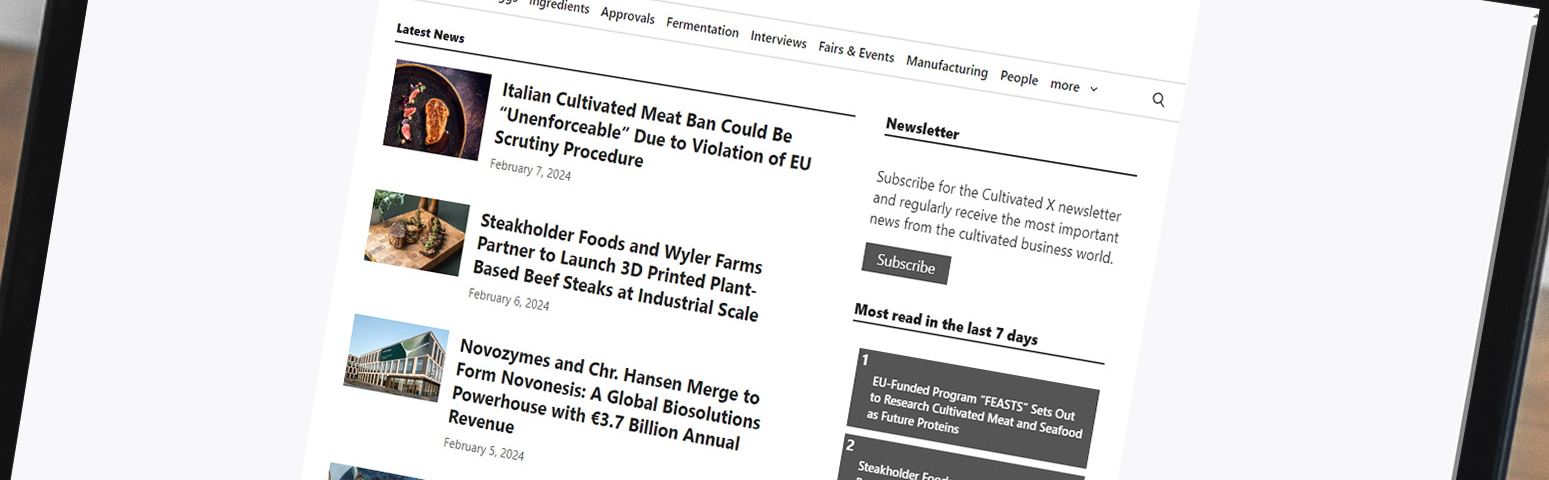 „Cultivated X will diese Entwicklung aus der Business-Perspektive begleiten. Es ist ein Querschnittsmagazin, das Entscheider:innen über Produkte, Produktionsverfahren und -anlagen, Lösungen, Technologien, Partnerschaften, Forschungsergebnisse, Investments, Akzeptanzstudien, ethische Aspekte, künstliche Intelligenz, Zulassungsrahmen, Personen, Unternehmen und Organisationen informiert“, so Peter Link. Und er ergänzt: „Wir starten mit einem großen News-Archiv mit über 400 Berichten – und werktägig kommen weitere hinzu. Darüber hinaus werden wir zunächst einen Newsletter pro Woche verschicken“.