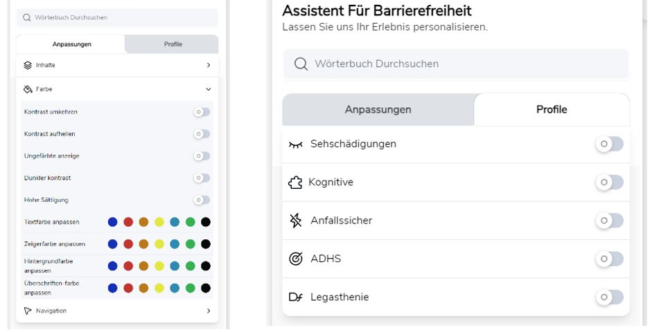 Funktionen für Personen mit Sehschwäche, motorischen oder kognitiven Beeinträchtigungen